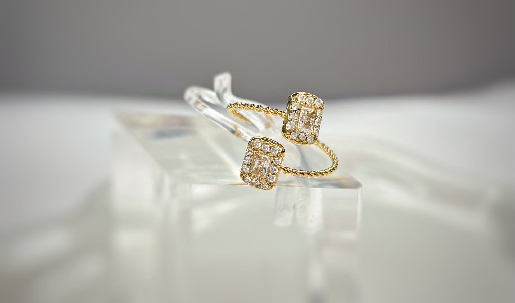 Avec ses multiples pierres en zirconium scintillantes qui brillent de mille feux, cette bague crée un effet "wahou" irrésistible. Le motif torsadé en acier inoxydable doré ajoute une touche de sophistication, faisant de chaque mouvement un véritable spectacle de lumière.